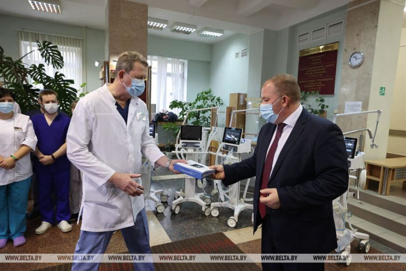 «Витебский облисполком и Министерство здравоохранения уделяют внимание укреплению материальной базы больниц. Витебская БСМП — основное учреждение по координации как поступления пациентов, так и распределения тяжелых больных. В больнице сконцентрирована одна из самых больших реанимаций. В связи с этим облисполком закупил новое оборудование и вот менее чем через три недели аппараты ИВЛ начнут работать», — отметил начальник главного управления по здравоохранению облисполкома Михаил Вишневецкий.