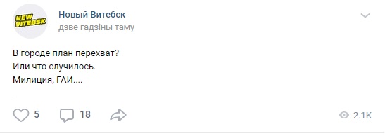 «Кто в курсе, с какого перепугу на Фрунзе и Смоленской столько ГАИ и чуваков в граждане? Кто к нам приезжает?» — написал Игорь Лапо в группе «Витебск вольны» в Фейсбуке.