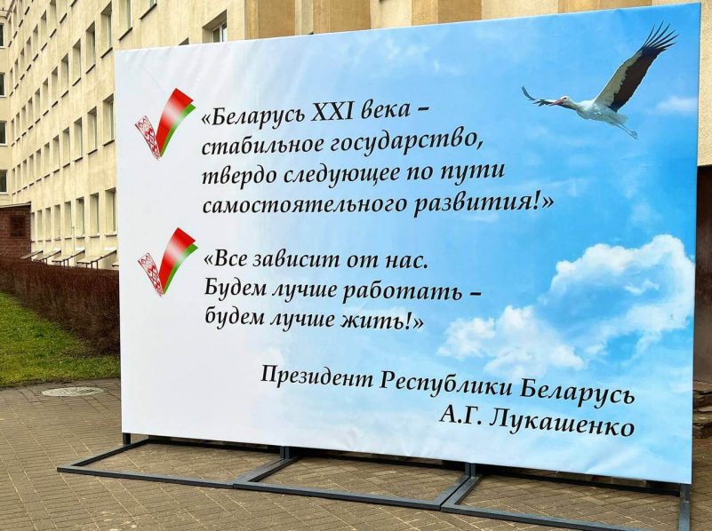 Установка баннеров около ВГМУ — не случайность. Университет, как и другие образовательные учреждения, давно стал площадкой для пропаганды. В прошлом году здесь активно обсуждали послание Лукашенко, а студенты фотографировались на фоне портретов «президента» и государственной символики. Теперь к этому добавились и цитаты.