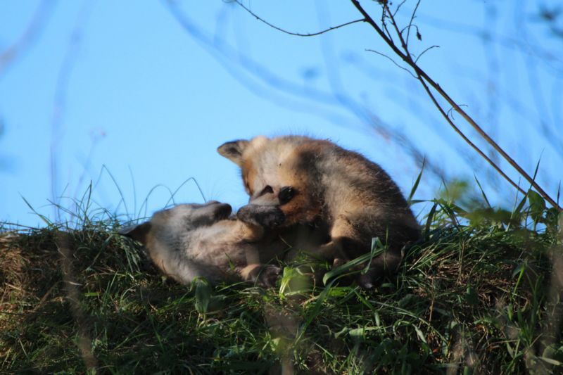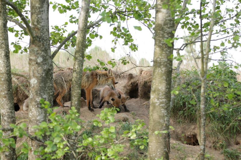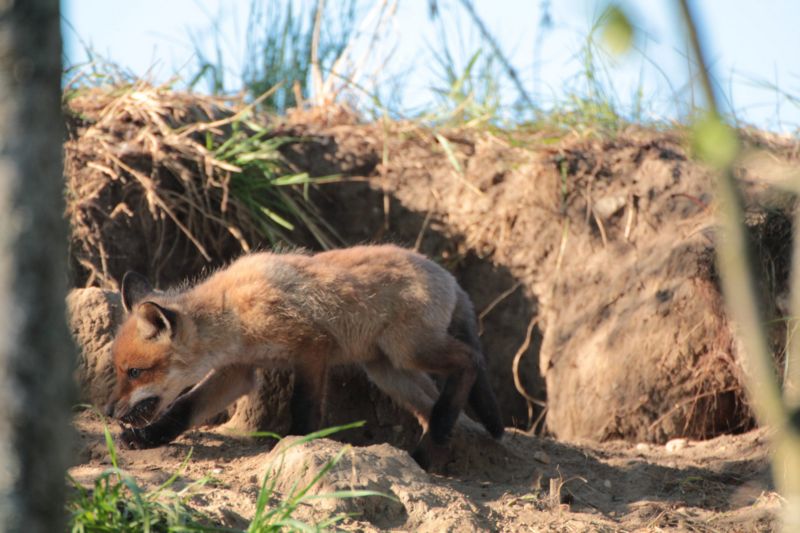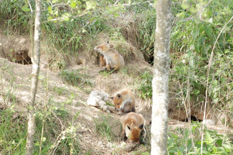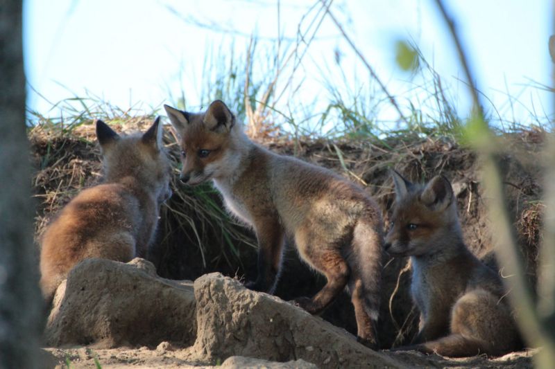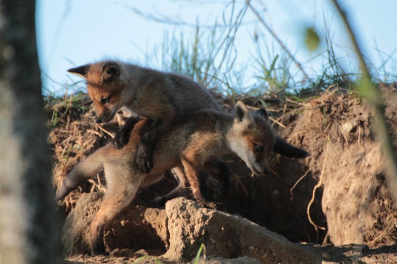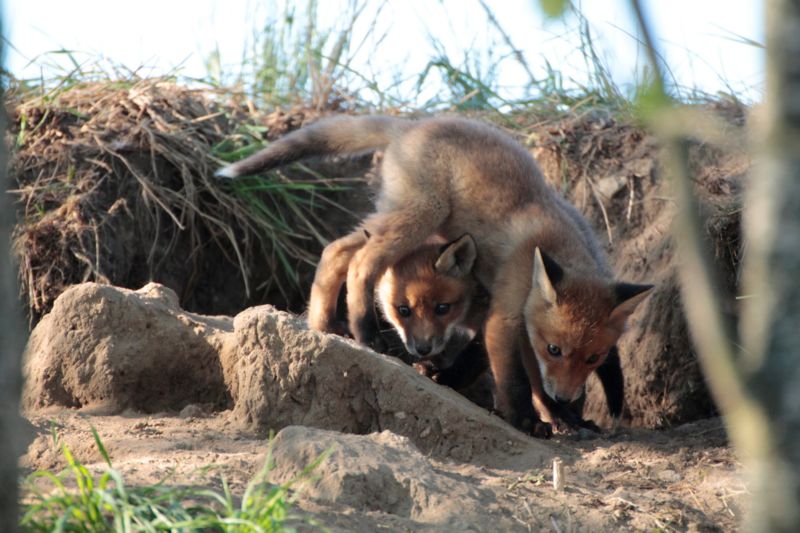 Много интересных наблюдений в природе совершаются совершенно случайно. Даже в такие минуты необходимо иметь с собой фотоаппарат, как бы тяжело ни было его носить с собой! В этом я убеждался 101 раз.На одних из своих учетов по «мониторингу обычных видов птиц» (а это было раннее майское утро) я шел по проторенному за много лет маршруту. Не подумайте, что это какая- то дорога или тропинка. Это условный маршрут по пересеченной местности, пролегающий через кустарники, зарастающие поля, посевы злаков, мелиоративные каналы.С биноклем на шее, блокнотом и карандашом в руках я методично фиксирую всех встреченных птиц без исключения и вот основное препятствие – широкая канава. Теперь нужно двигаться влево на 100м, к бобровой плотине, через нее легко можно перейти на другую сторону. И вдруг, замечаю по ту сторону: насыпь песка, которая имела вид целой системы нор.Фото Виталия КощееваПодошел ближе: много мелких следов, пару выходов из норы, и у входа клубится мошкара – все признаки, что жилая. Где-то в стороне лежит кусок потрепанной шкуры зайца.«После учета вернусь понаблюдать», — подумал про себя, а у самого уже зрел план фотографирования обитателей: лисят и взрослого животного.Уже через час я вернулся, выбрал удобную для наблюдателя позицию так, чтобы ветер дул от норы на меня (ни в коем случае не наоборот: лисы вычислят меня по запаху за считанные секунды и не появятся).Ожидание было около получаса. В стороне двигалась взрослая лиса, издавая «тявканье», и малыши выкатились из норы, жадно приседая у морды мамки, которая принялась кормить отпрысков, срыгивая полевок.Фото Виталия КощееваТри, четыре, пять — насчитал достаточно большой выводок!Фото Виталия КощееваВзрослая лиса недолго побыла с потомством: всего пару минут, а затем отошла в сторону, немного осмотрелась и ушла тем же маршрутом вдоль мелиоративного канала. Думаю, что через ту же бобровую плотину, по которой несколько часов ранее шел и я.Фото Виталия КощееваГлупыши у норы начали играть, гонятся друг за другом, и я делаю несколько кадров, хотя мешают деревья.Фото Виталия КощееваФото Виталия КощееваФото Виталия КощееваФото Виталия КощееваФото Виталия КощееваНужно менять позицию съемки, но это уже в другой раз. Следующий раз необходимо опять подбирать нужный ветер и другие подходящие условия для съемки. Решил снимать по другую сторону канавы, предварительно взяв с собой ивовых веток для собственной маскировки, а так же надел на себя костюм «леший» в зеленых тонах (фотографирование животных требует наличия различных экипировок), чтобы максимально скрыться в растительности, на объектив надеваю рукав из масксеточки, дополнительно маскирую себя ветками ивы. На этот раз уже через 20 минут любопытные лисята самостоятельно вышли из норы.Фото Виталия КощееваФото Виталия КощееваА кто-то подходит к воде.Фото Виталия КощееваКто-то загорает на весеннем солнце, пару лисят тягают друг друга за уши, хвост.Фото Виталия КощееваВ целом обстановка следующая: поведение очень похожее как у щенят собаки, но фотографировать – одно удовольствие.Фото Виталия КощееваФото Виталия КощееваОпять слышу знакомое тявканье — пришла добытчица-мать. Лисята, как по команде, бегом двинулись навстречу.Фото Виталия КощееваОднако я достаточно близко (в 7 метрах напрямую), и лисица начала подозревать присутствие чужак