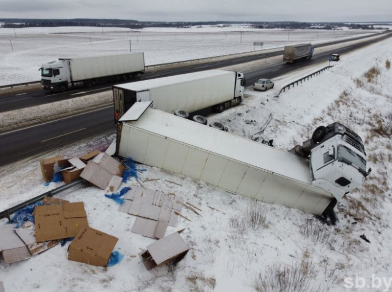 Авария произошла под Толочином. Тридцатишестилетний водитель из Бреста ехал в сторону Москвы. Он перевозил замороженные ягоды.