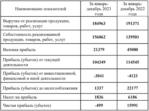 А теперь заглянем в финансовый отчет поставской «молочки» за 2023 год (таблица ниже). Чистый убыток составил почти полмиллиона рублей — годом ранее там была чистая прибыль в 16 млн рублей. В валовой прибыли разница несколько иная: 21,4 млн рублей в 2023 году и 45 млн рублей в 2022 году. По всем признакам, предприятие произвело в прошлом году продукции не меньше, чем годом ранее, но выручило за нее меньше.