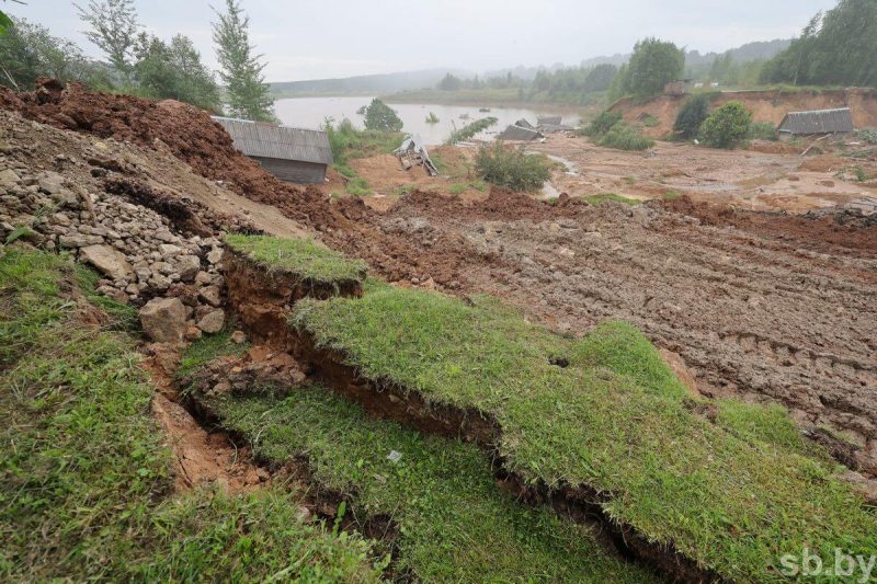 Провалы и сходы грунта на Витебщине: смыло дорогу в Барвине, обрушились постройки в Верховье