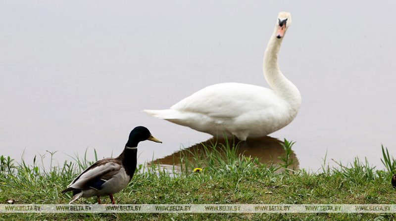Около 20 лебедей поселились на водохранилище в деревне Сокольники Витебского района.