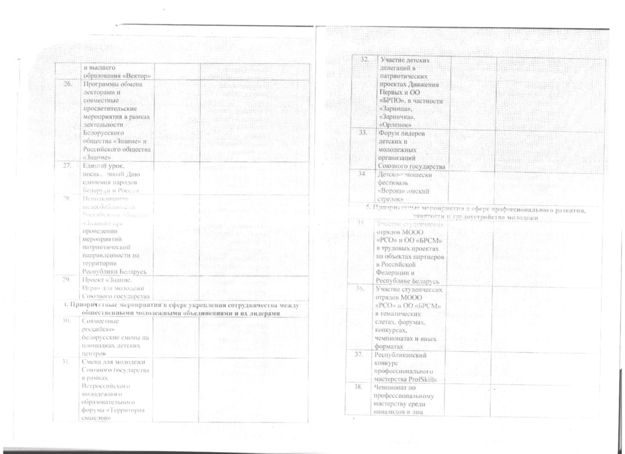 Список мероприятий предполагает не просто формальные встречи, а глубокую интеграцию с российскими структурами. Упоминаются «Движение первых», БРПО, Юнармия, союзные молодёжные форумы. Причём участвовать должны не только школьники, но и воспитанники кадетских классов, колледжей, допобразования. Фактически речь идёт о системной работе по формированию у детей и подростков союзной, пророссийской идентичности, где «патриотизм» подаётся как готовая схема — с военной формой, строем, историей без сомнений.