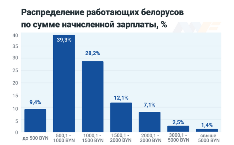 По данным выборочного исследования Белстат о зарплатах за 2021-го только 23% белорусов зарабатывали 500 долларов и более в месяц.