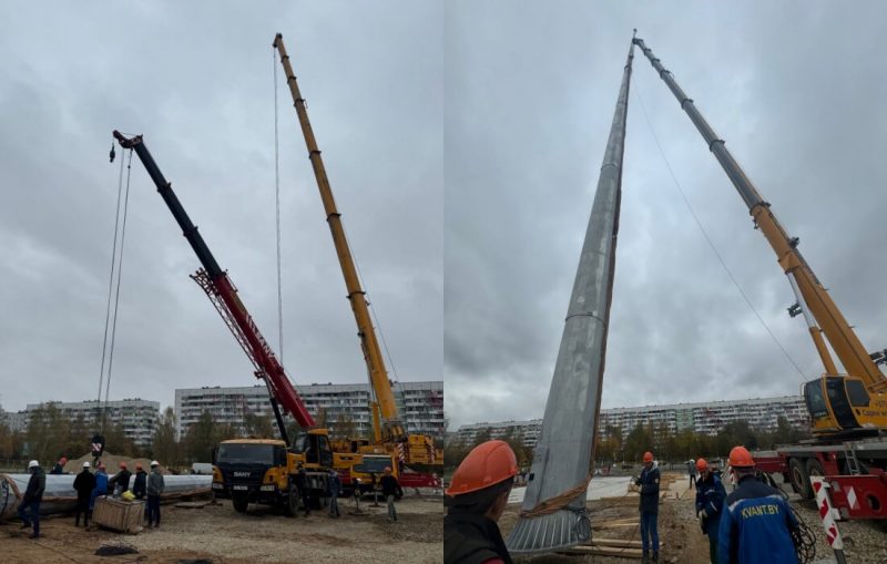 69-метровый флагшток уже собрали и установили на специально частично оборудованной площади у Ледового дворца. Ещё во время общественных обсуждений администрация города подчеркивала, что это сооружение будет возводиться на спонсорские деньги, а это значит, что бюджет города не будет задействован.