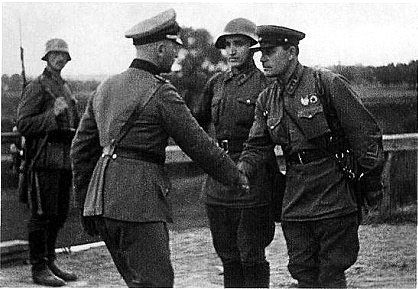 22 сентября 1939г., когда ещё сражалась окружённая Варшава и защитники полуострова Хель, в захваченном Бресте немцы и русские провели совместный военный парад по случаю победы над Польшей. Генерал Гудериан и комбриг Кривошеин под бравурные звуки военного оркестра любезно обменялись флагами.