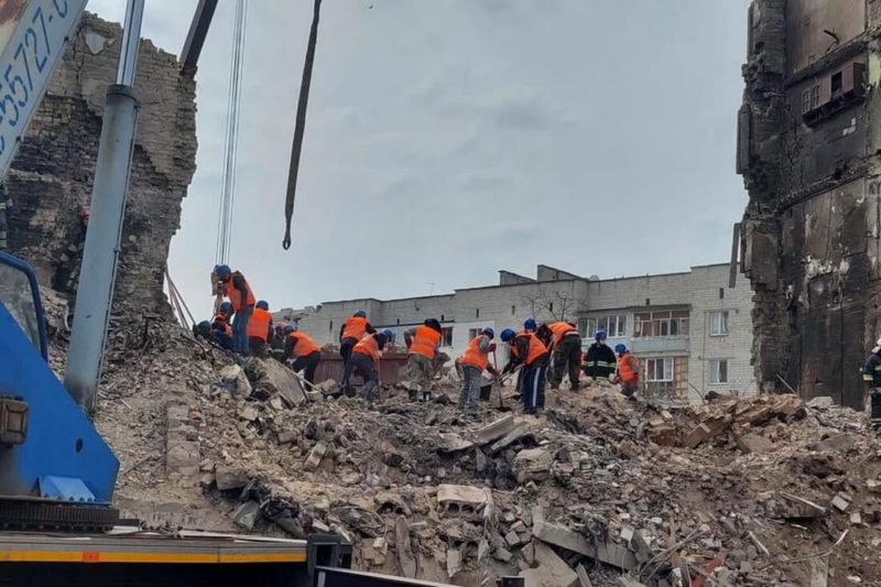 Фото: украинские спасатели разбирают завалы