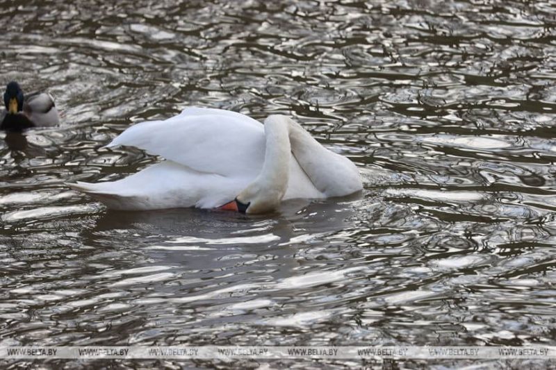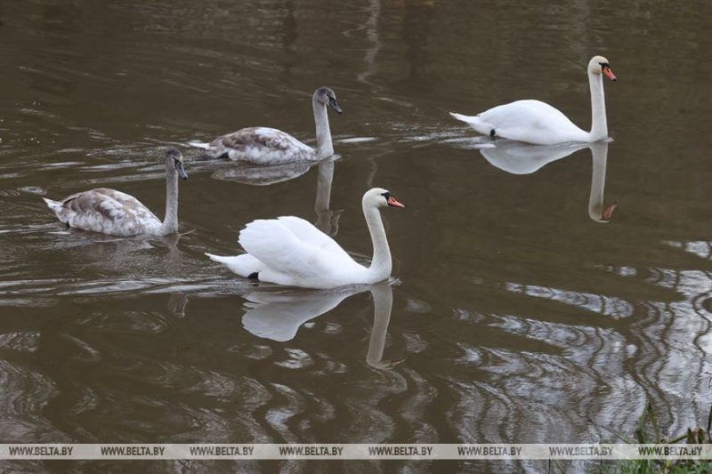 Стая лебедей поселилась на реке Витьба в Витебске.