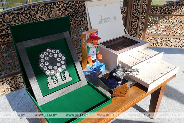 Александр Лукашенко подарил Владимиру Путину сувениры II Европейских игр — панно из мореного дуба с закрепленными на нем медальонами, символизирующими 15 видов спорта, представленных на форуме, эксклюзивный набор шоколада и талисман игр лисенка Лесика. Еще один подарок — фигурка, изображающая двух дзюдоистов. Как известно, российский лидер увлекается этим видом спорта.