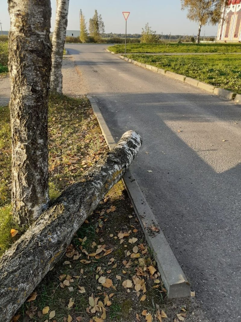 І нарэшце на гэтым тыдні камунальнікі спілілі чатыры сухія бярозы. Гэтыя дрэвы яшчэ трэба прыбраць з праезда. Але асноўная праца зроблена.