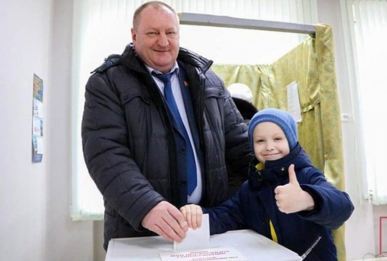 У Паставах прыйшоў галасаваць датэрмінова кіраўнік раёна разам з малалетнім сынам