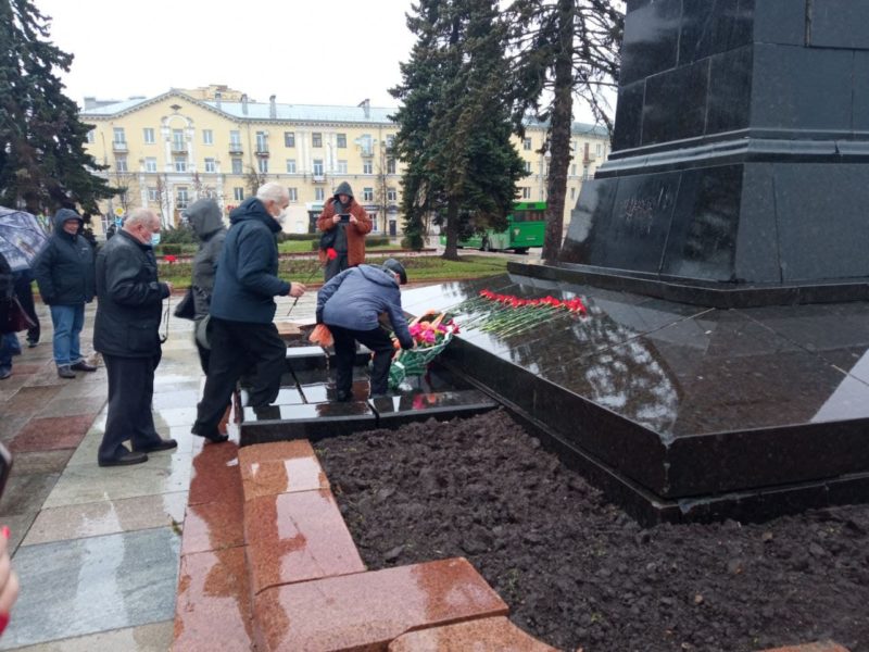 Ніякіх прамоваў і мітынгаў не ладзілі – усклалі кветкі, разбіліся на невялікія купкі і абмяркоўвалі свае справы. Двое пенсіянераў вырашалі, у якой кавярні лепш адзначыць дзень «вялікага кастрычніка». Ужо праз 10 хвілін людзі пачалі разыходзіцца. Мяркуючы па прысутнасці машыны хуткай дапамогі і супрацоўнікаў міліцыі, якія хаваліся ад дажджу пад ялінай, акцыя была ўзгодненая з мясцовымі органамі ўлады.
