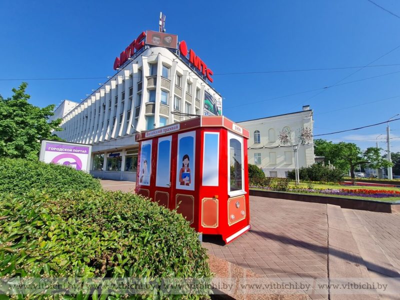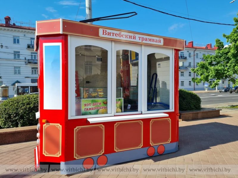 В центре Витебска установили торговый павильон стилизованный под трамвайчик