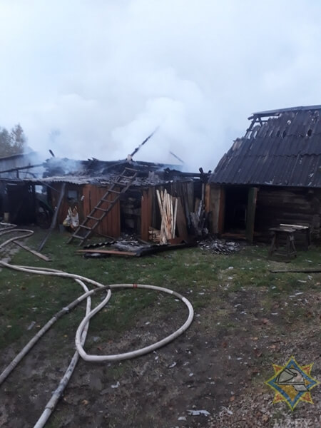8 октября в 17-18 спасателям поступило сообщение о пожаре сараев по улице Школьной в агрогородке Калиновка Дубровенского района