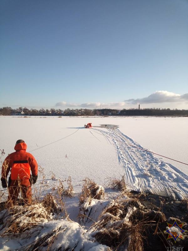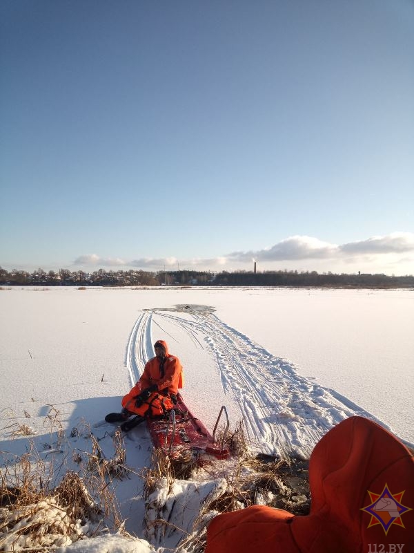 21 декабря в 14-12 спасателям поступило сообщение о том, что на озере Проша в городе Лепель под лед провалился человек.