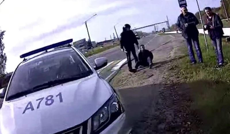 Водитель Volkswagen ехал на завод, когда увидел на пешеходном переходе мужчину и остановился, чтобы его пропустить. Тогда пешеход вдруг побежал, запрыгнул на авто и потоптался по капоту и крыше, после чего спрыгнул и перешел дорогу. Водитель развернулся и подъехал к хулигану, но тот достал кухонный нож и начал им размахивать. Новополочанин вместе с другим водителем, который был очевидцем происходящего, решили задержать пешехода. Им это удалось, мужчины вызвали милицию.
