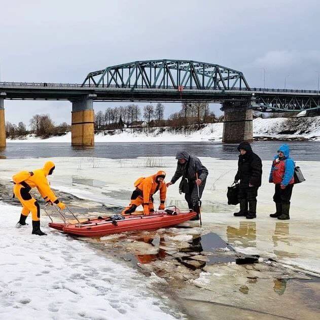 Неизвестно, куда бы уплыли 22 заядлых рыболова, если бы не своевременная помощь. Работники Полоцкого ГРОЧС специальным оборудованием зацепили льдину и помогли пострадавшим выбраться на берег.