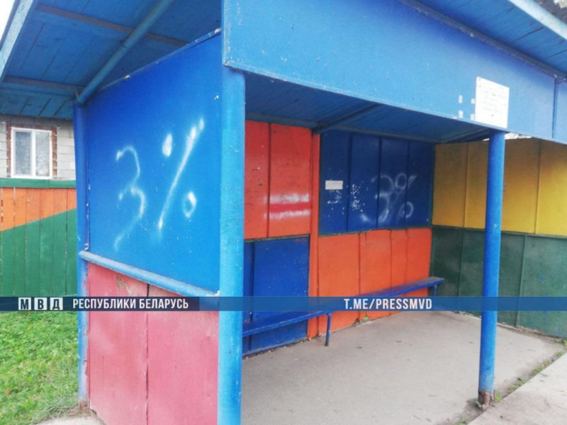 В Поставах парень разрисовал автобусную остановку протестными символами