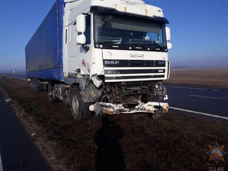 Водитель грузового автомобиля «ДАФ» до приезда спасателей смог покинуть кабину грузовика самостоятельно, не пострадал, сообщает Витебское областное управление МЧС.