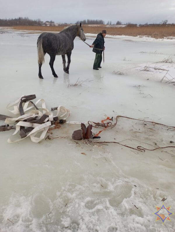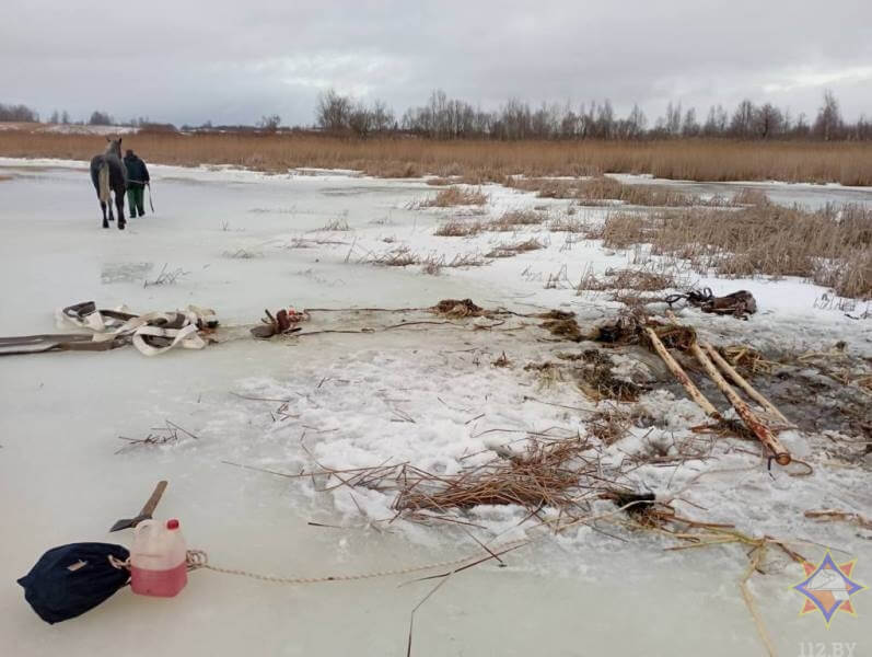 По прибытии было установлено, что на озере Черсвядское в 20 метрах от берега под лёд провалилась лошадь.