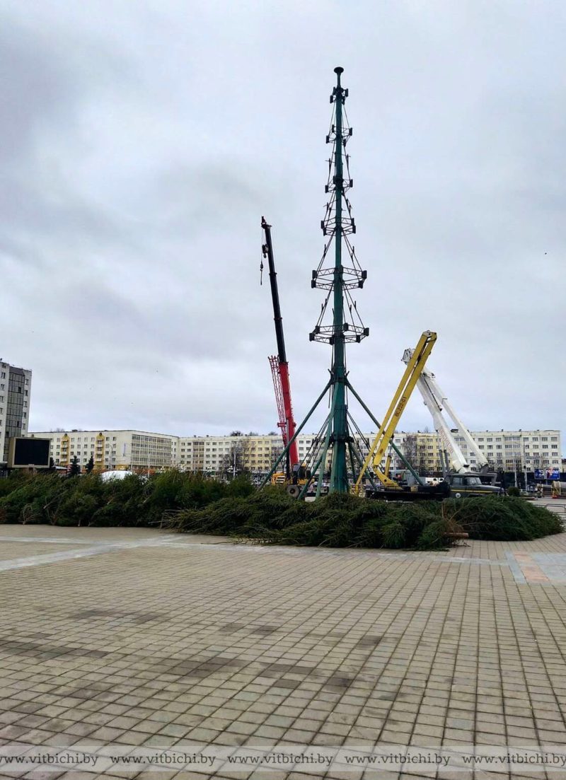В Витебске на площади Победы устанавливают новогоднюю елку