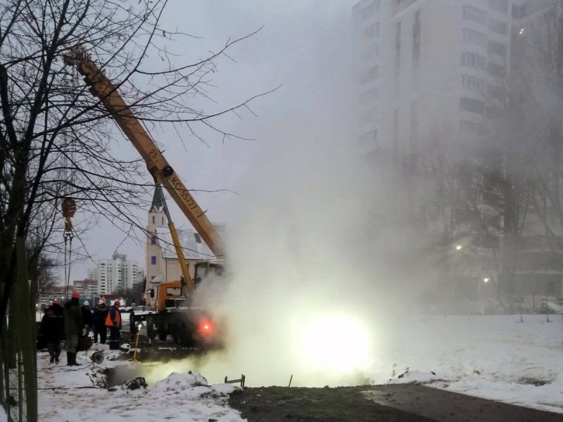В Витебске по улице Воинов-Интернационалистов энергетики устранили дефект трубопровода