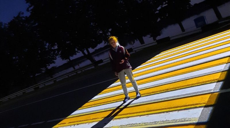 Обычная «зебра» на улице Чкалова, возле Южного рынка, стала объектом для эксперимента Госавтоинспекции. Здесь установили оборудование, которое привлекает и повышает внимание всех участников дорожного движения. Над Z-образным пешеходным переходом в темное время суток включается специальная подсветка, которая проецирует бело-желтую разметку на дорогу. Рядом на световой опоре смонтировали трехсторонний рожковый светодиодный фонарь, который выхватывает из затемненных участков силуэты прохожих задолго до того, как они приближаются к проезжей части. А это дает преимущество как пешеходу, так и водителю, который успевает замедлить движение авто. В зимнее время, особенно когда на дороге лежит снег, и в любую непогоду такой проектор обозначит пешеходный переход и позволит заметить его на большом расстоянии, пишет БЕЛТА.
