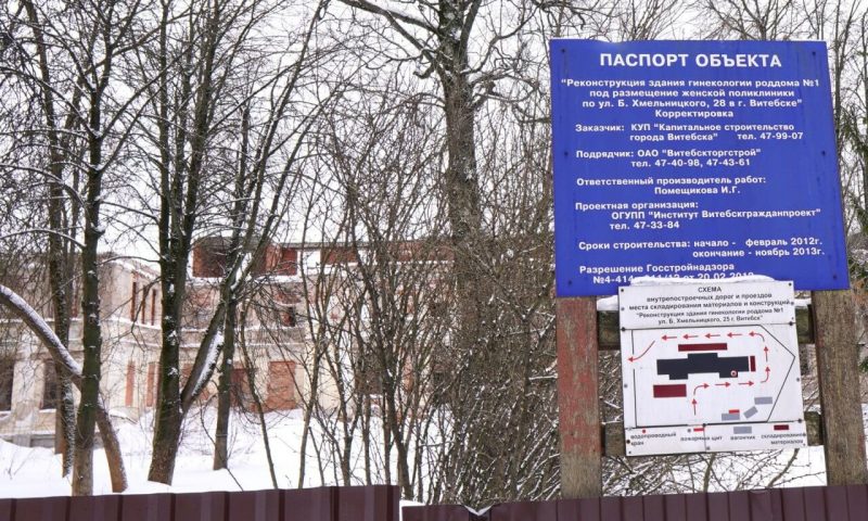 Несколько лет здание пустовало, постепенно приходя в упадок. Кирпичные стены рушились, сквозь дырки в кровле изнутри начали прорастать молодые деревца… Надежда на новую жизнь появилась в виде таблички на строительном заборе, который неожиданно вырос вокруг бывшего роддома. Табличка сообщала, что здесь проходит реконструкция, и что к 2013-му году Витебск получит-таки новую женскую поликлинику. Однако строительный забор вместе с многообещающей надписью так же неожиданно исчез, как и появился. А здание вновь оказалось заброшенным, хотя имеет официального хозяина.