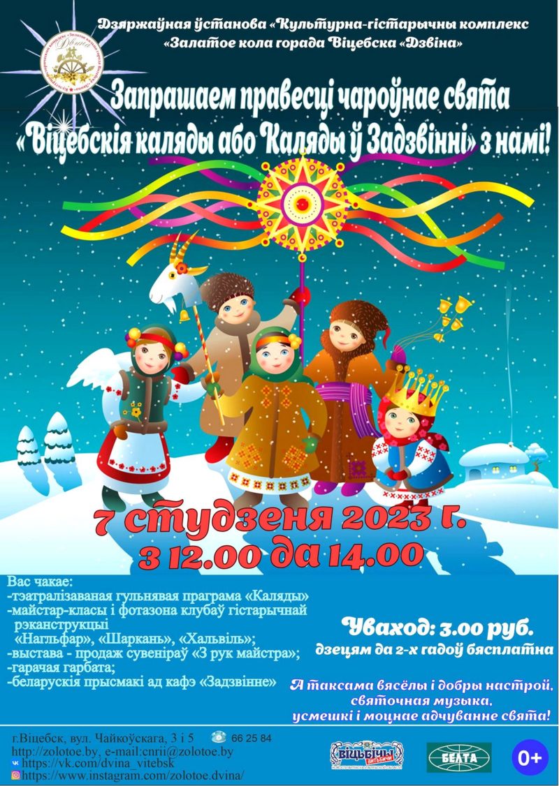 7 января в культурно-историческом комплексе «Золотое кольцо Витебска «Двина» пройдет рождественское гуляние «Віцебскія каляды, або Каляды ў Задзвінні».