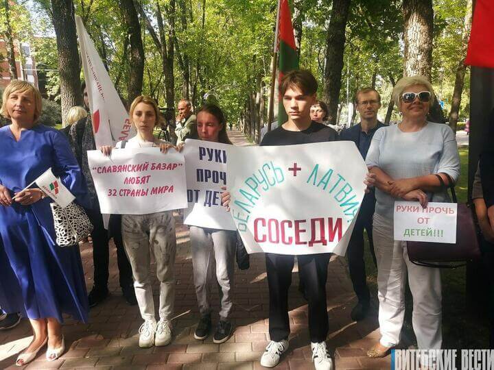 Днем 19 июля у консульства Латвии в Витебске прошел митинг. Как сообщает телеграм-канал Витебского облисполкома, «представители общественных объединений и общественность города» вышли протестовать против заявлений Латвии по ситуации с воспитанниками рижского кружка Academy KidsTV, которые на «Славянском базаре» взяли интервью у Александра Лукашенко.