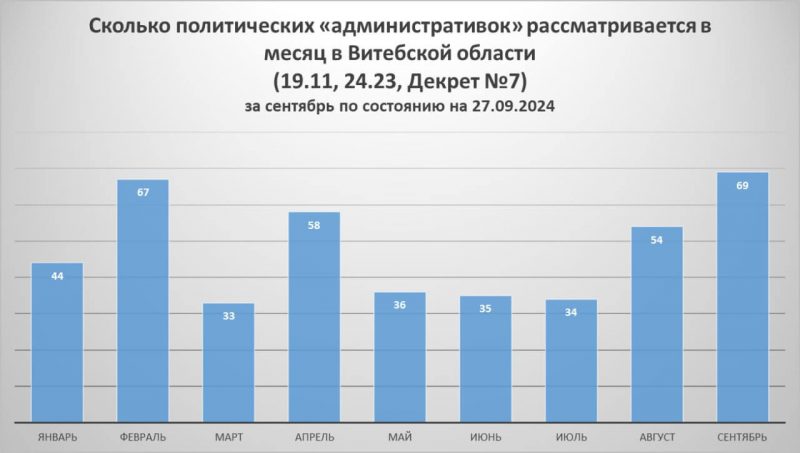 Также на прошлой неделе в Витебской области прошло 10 судов по «политическим» административным делам.