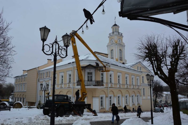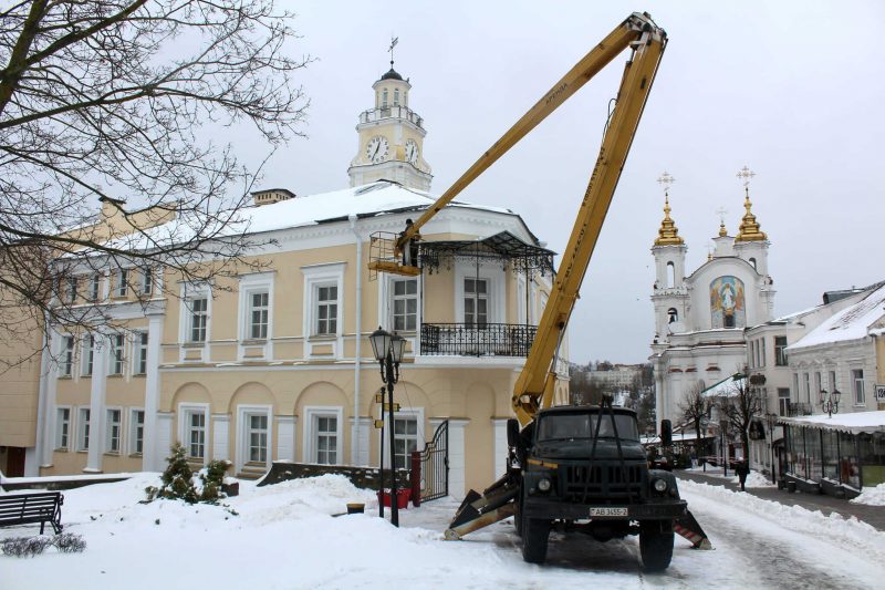 В Витебске завершился монтаж навеса на угловом балконе городской Ратуши
