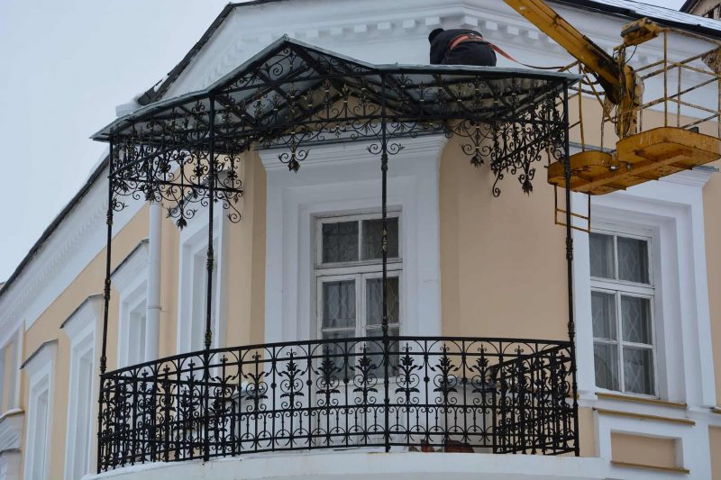 Сегодня завершился монтаж навеса на угловом балконе Ратуши со стороны улицы Суворова (Узгорской).