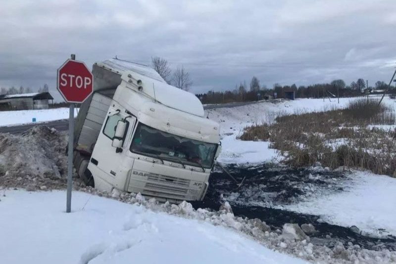 Потребовалась помощь госавтоинспекторов. Дорогу перекрыли. Задействовали дополнительную технику. До часу ночи велись работы, груз спасён. С водителем всё в порядке, сообщает ГАИ Витебской области.