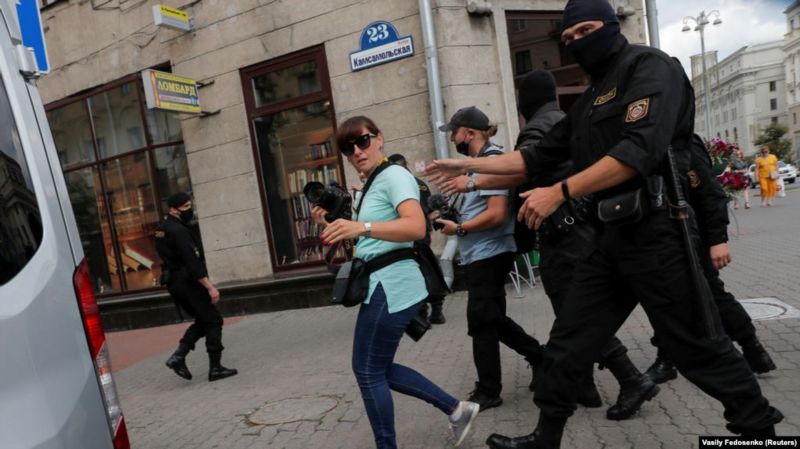 МВД Беларуси сообщало, что журналисты были доставлены в Октябрьское РУВД города Минска для проверки документов, подтверждающих законность их профессиональной деятельности.